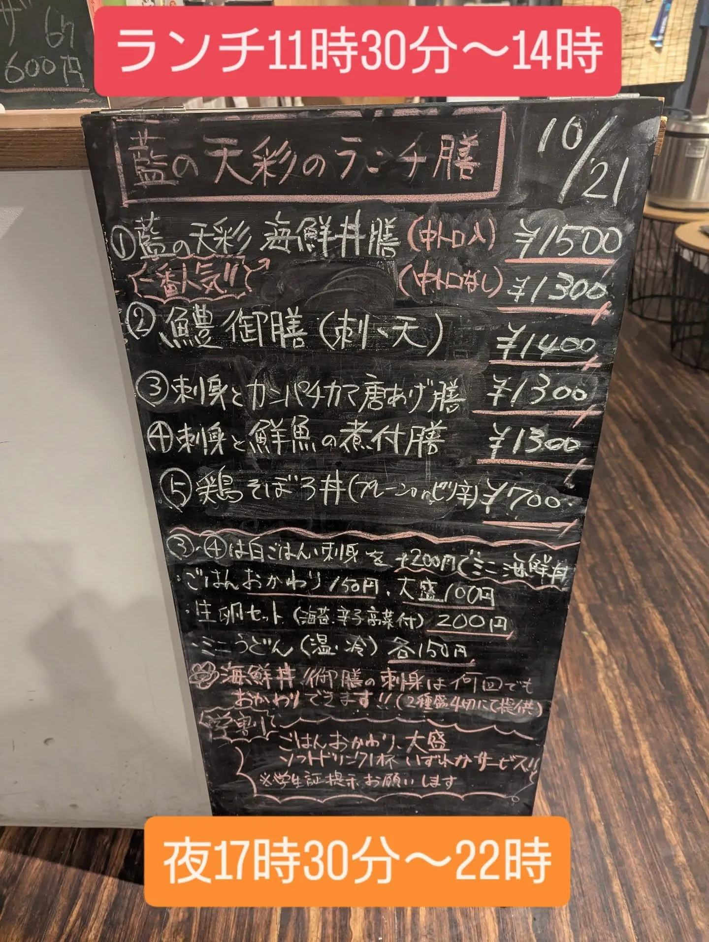 和食堂藍の天彩です。