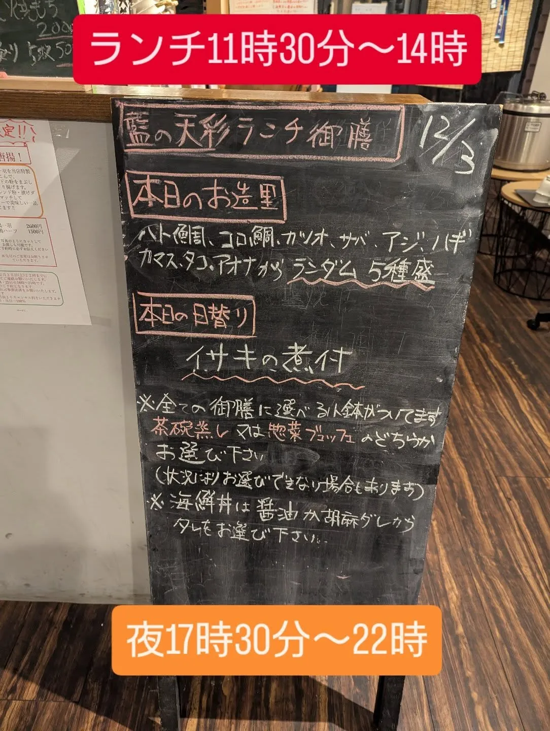 本日は刺身と天婦羅御膳がとても人気でした😊