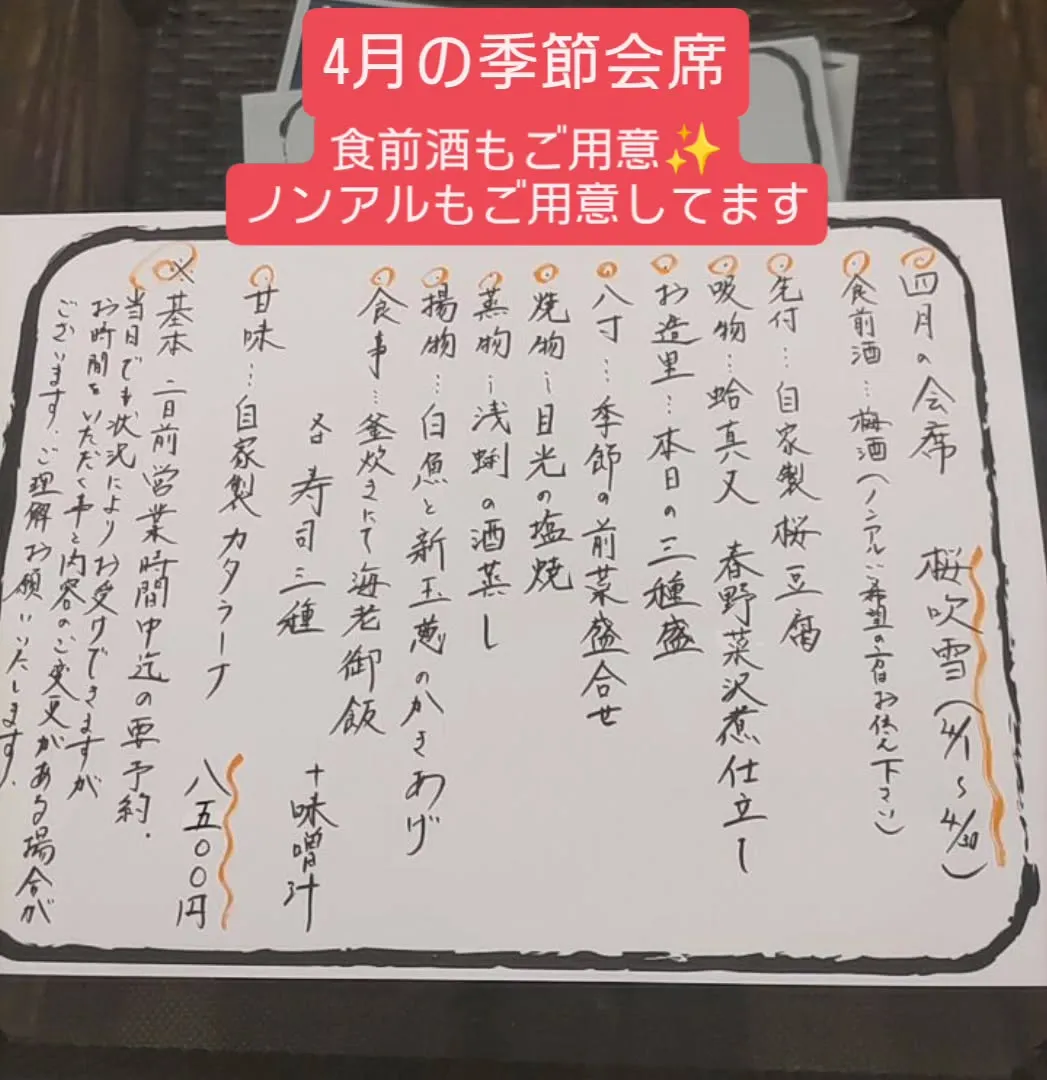 4月の季節会席を準備しております😊