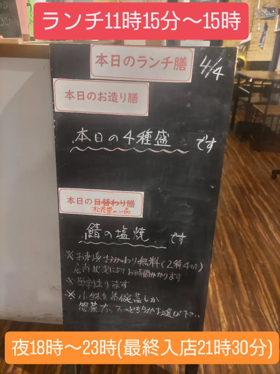 お造り御膳が本日の4種盛り